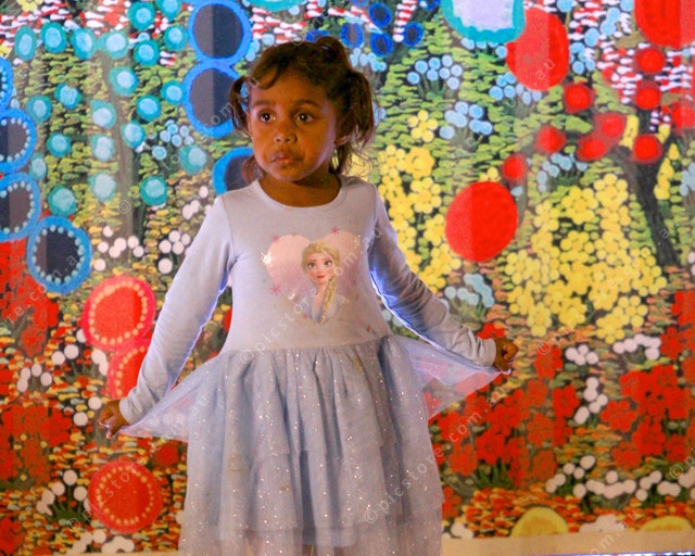DANCE: Na’hoya Braybrow does a twirl in front of an art installation at Parrtjima. (PIC: PHIL WILLIAMS 470234_07)