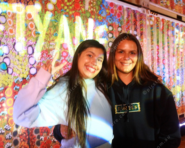 Amber Tomlins and Viviana Petyarre enjoying the lights of Parrtjima. (PIC: PHIL WILLIAMS 470234_13)