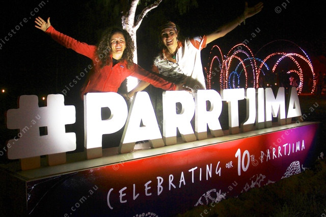 CELEBRATE: Susana Gibegini and Fabiana Buffa celebrating 10 years of Parrtjima on opening night. (PIC: PHIL WILLIAMS 470233_01)