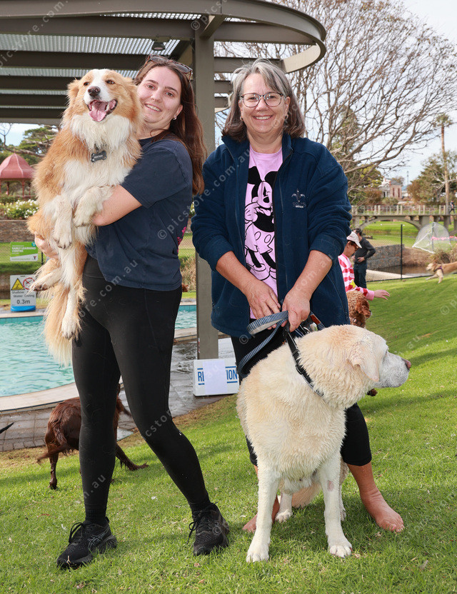 Laura and Cheryll with Geoff and Monty at the Strathalbyn Pool. 476262_02