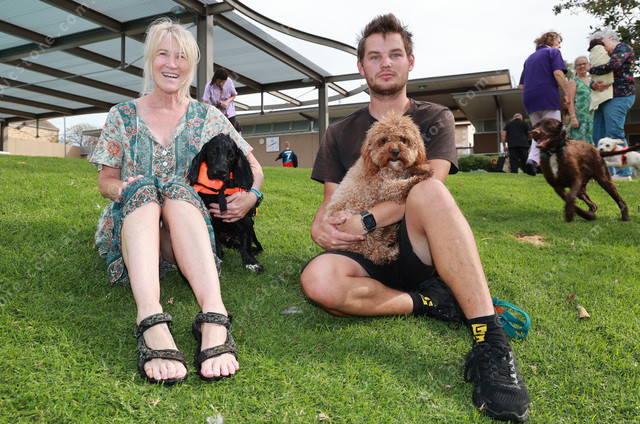 Jo Davies and Anthony Lamerichs at the pool with their pups. 476262_03