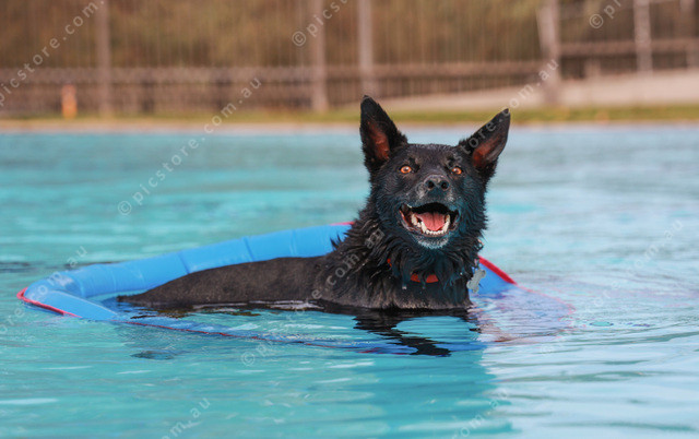 Manny was floating about in the pool at Strathalbyn’s Paw Party. (Jesse Ehlers) 476262_04