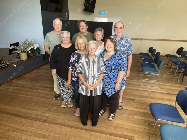 Phil Mann, Sue Willsmore, Ian Curry, Lorna Jones, Di Welk, Betty Greaves, Roxanne Venner and Stephen Fowler of the South Coast Schools Ministry Support Group Inc. Photo: Emma Heidenreich 454835_01