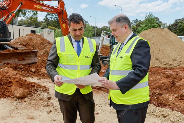Ross Pelligra and Glenn Docherty look over the plans for the new commercial hub. (511832_03)