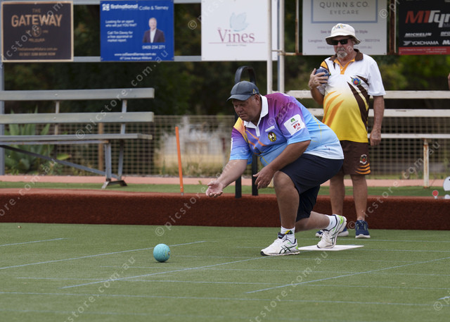 Chris Maddigan during the 2025 Sunraysia Bowls round 6 match between Merbein and Irymple.