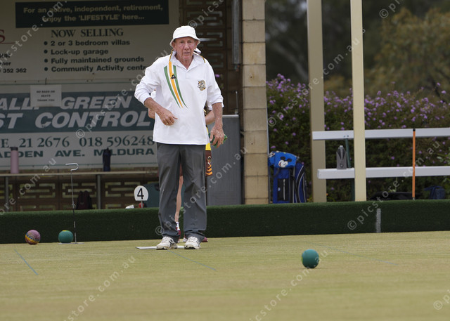 Fred Bacon during the 2025 Sunraysia Bowls Association Lawn Bowls round 7 match between Workers and Merbein.