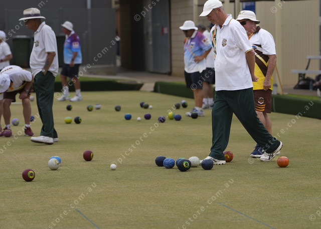 Action during the 2025 Sunraysia Bowls Association Lawn Bowls round 7 match between Workers and Merbein.