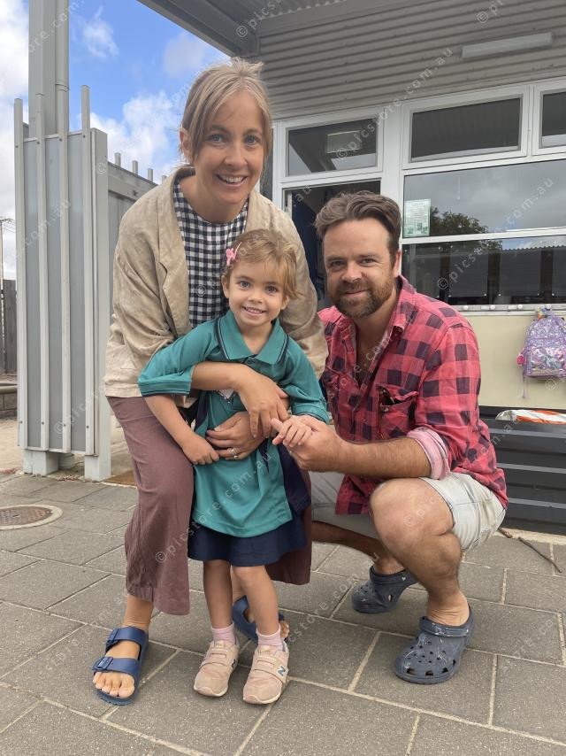 Port Elliot reception student Poppy with mum Hannah Vanderwal and David Wickens. 456480_04