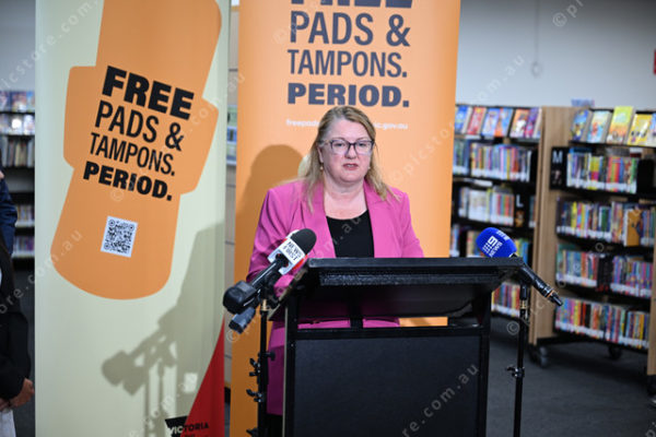 Expansion of the free provision of period products from libraries to shopping centres. Pic of local MP Natalie Hutchins. Photo by Damjan Janevski. 476705_04