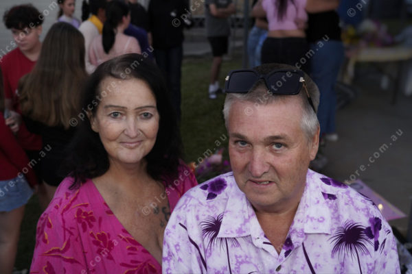 Jodie Krause and Darryl Wakelyn wore bright clothing as asked for the vigil.