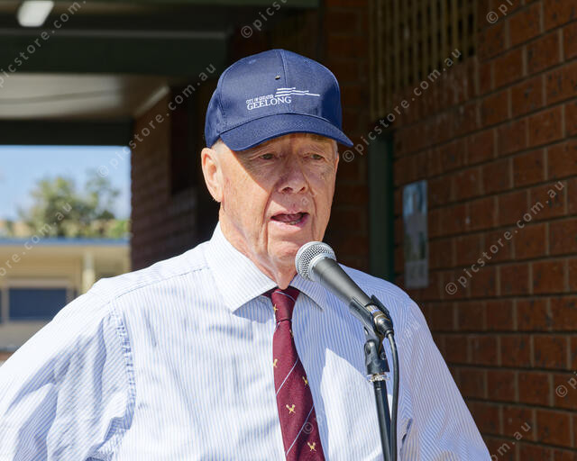 Cr Rowen Storey opening the pickleball courts at Portarlington (Ivan Kemp) 534415_11