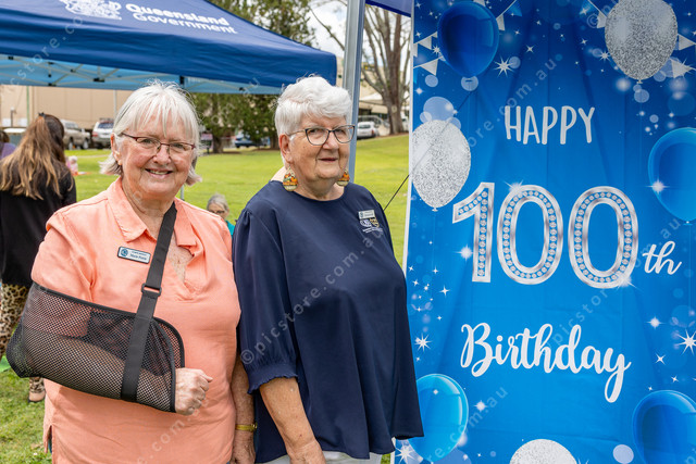 Marie Petrie and Brenda Scott celebrating 100 years of the Gympie QCWA.