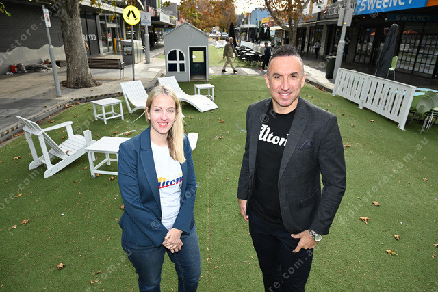 Hobsons Bay council this week voted to close Pier Street in Altona to traffic permanently. Pic of mayor Cr Daria Kellander and Ilch Mickovski president of Altona Village Traders Association. Photo by Damjan Janevski. 481266_03