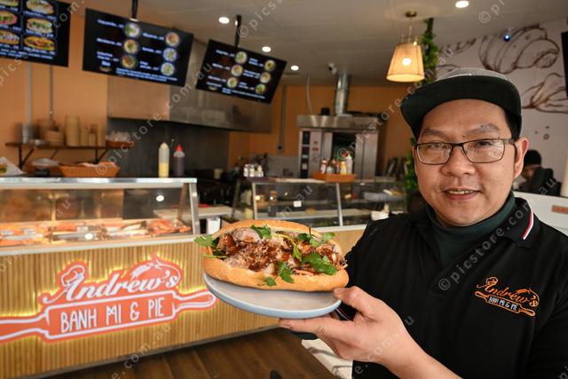 Andrews Banh Mi and Pies were recently finalists for a nationwide pie competition, a lot of their pies were crowned for being the best in the area. Pic of the owner Nick Huynh. (Damjan Janevski). 502286_06