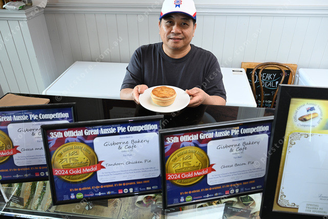 Gisborne Bakery Cafe has won big at the Great Aussie Pie Competition, winning four gold, four silver and three bronze. Pic of owner Kimthai Seang. (Damjan Janevski). 503133_04