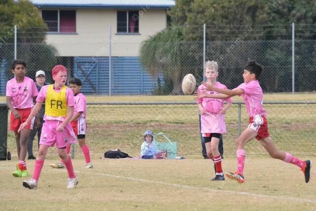 Kingaroy Red under-12s pass the ball to a team-mate during their match against the Cherbourg Hornets. 485969_22