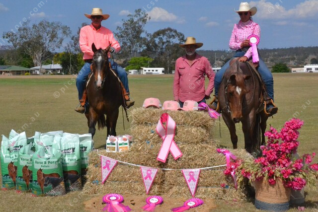 President Dave Golding with the Open Snafflebit winners: Steve Dunn on Rey and runner-up Hayle Scott on Jenlands. 510276_09
