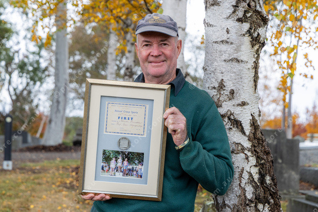 Adrian Funtson with a photo of him as a kid with an award for the 100m dash. Note Pakenham Gazette is on the award.