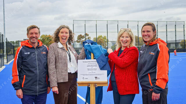 Andrew Crowley (Vice President of Torquay Tornadoes), Cr Libby Stapleton (mayor of Surfcoast shire), Gayle Tierney MP and Saren Storen (President of Torquay Tornadoes) (Ivan Kemp) 520844_08