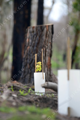 Seedling with a burnt tree stump behind. 197559_01