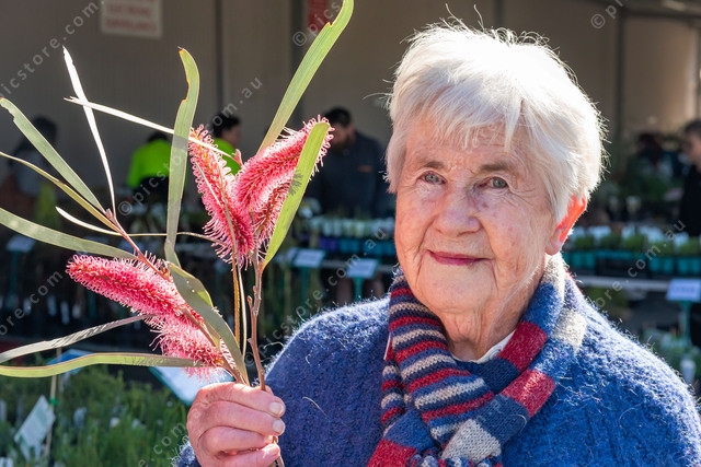 Berwick local Jan Chisholm with her home grown “Pink Hakea”. 501211_01