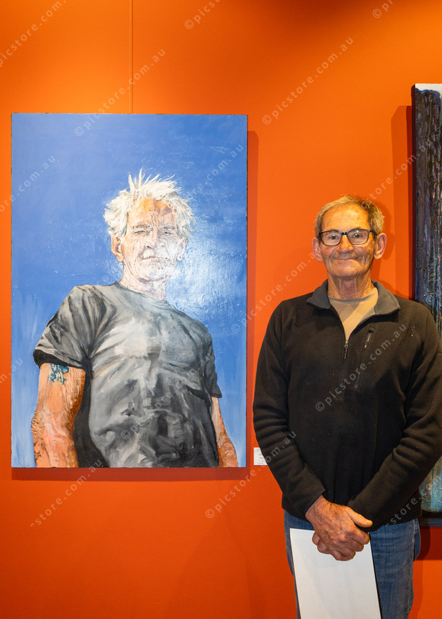 Bendigo Community Bank Port Lincoln Art Prize 2026 Major Award winner Will MacGregor with his oil painting ‘Coastal Man’. (Mitchell Paterson: 529599_06)