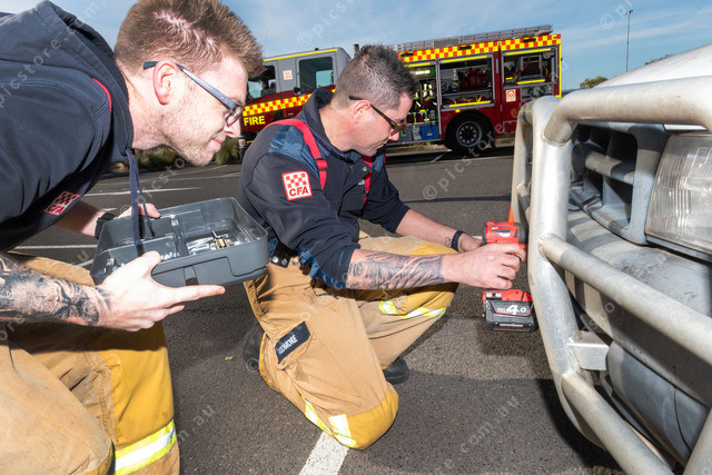 Hampton Park Fire Brigade members Joel Shaw (left) and Leigh Skidmore (right) working fast. 482738_08