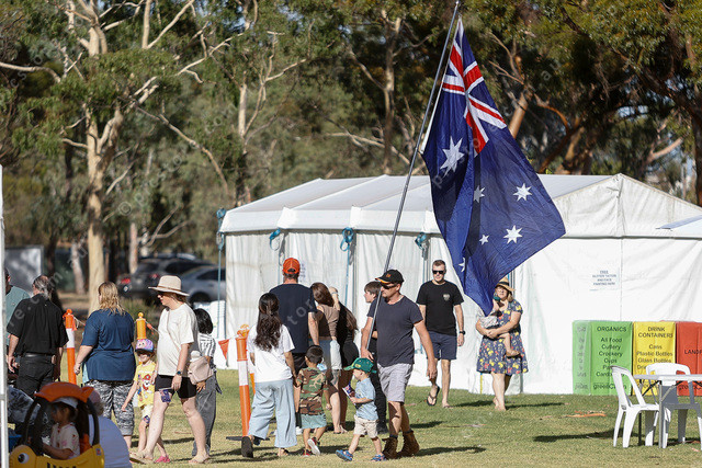 John Morrell carries a large Australian flag through the crowd. (530754_12)