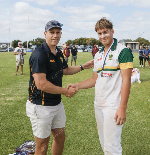 Charlton’s Oliver Haylock was presented his best on ground medal by Jamie Fewster. (467683_16)