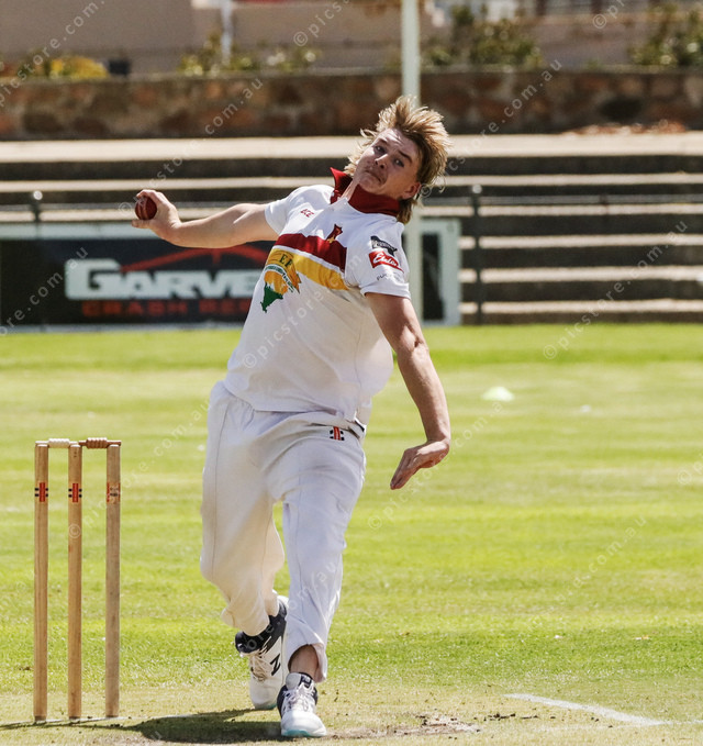 Tom Morgan in action bowling for Southern Eyre South in the A grade preliminary final. (466240_05)