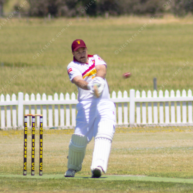 Southern Eyre South opener Liam O’Dea sent this ball over the fence for six runs. (511730_02)
