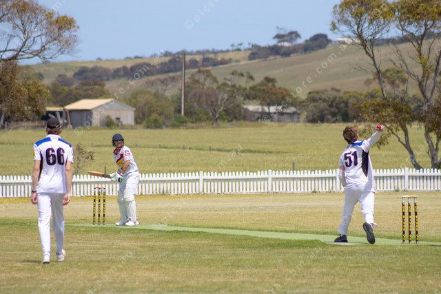 Tod River South’s Declan Schulze bowls to Southern Eyre South’s Aidan Kakoschke. (511730_06)
