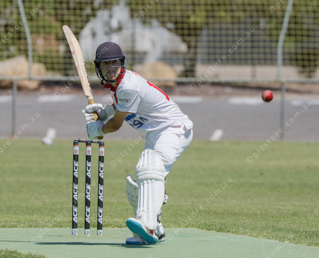 Tasman batsman Bodhi Fauser steps forward to play at the ball. (463193_05)