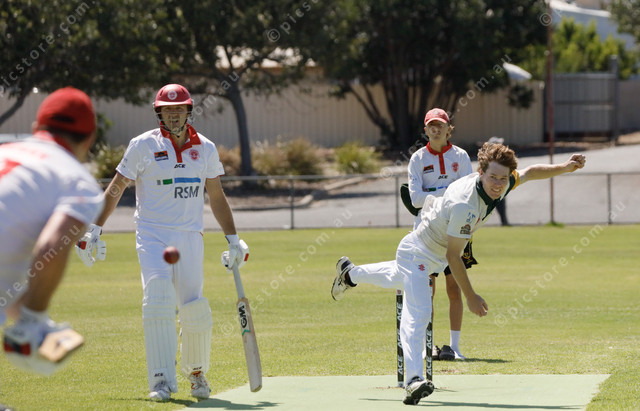 Charlton’s Connor Madden watches his delivery on its way to Tasman’s Luke Strudwick. (463193_08)