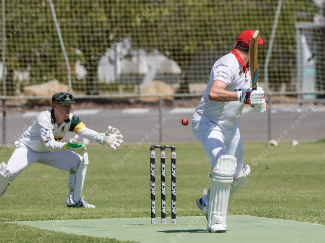 Tasman’s Luke Strudwick watches the ball through to Charlton wicketkeeper Camden Madden.463193_13