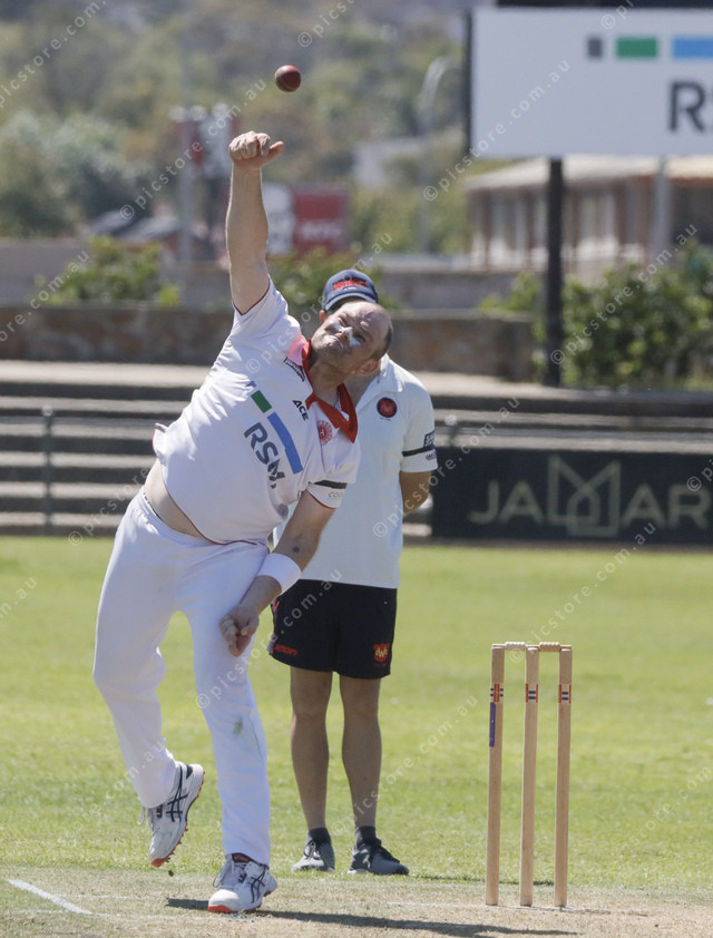 Andrew Frick is about to spin the ball for Tasman. (515155_07)