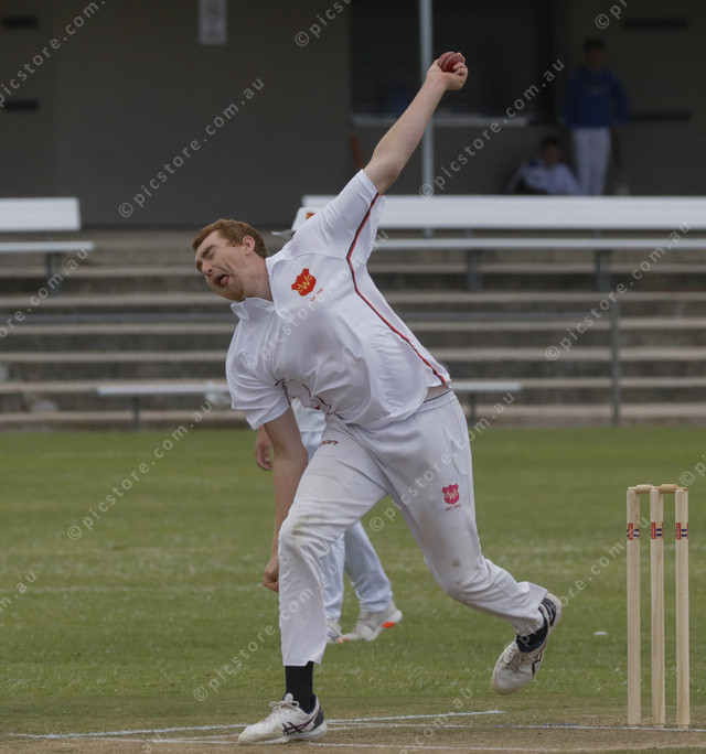 Dylan Vonderwall bowling for Wayback in the A grade. 516583_07