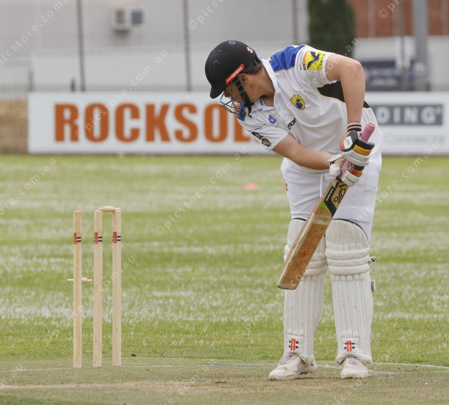 Tod River Souths’ batsman Tate Shillabeer looks back to see the bails falling to the ground in the A grade. (521441_01)