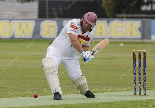 Southern Eyre South’s Roger Puckridge winds up to hit down the ground. (521441_03)