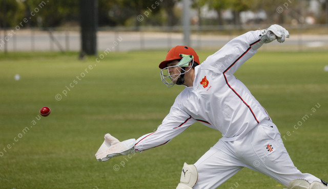 Wayback wicketkeeper Sam Cousins sticks out the right glove. (523155_05)