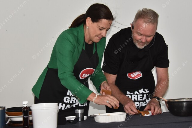Nanango MP Deb Frecklington and Chef Jason Ford put together the tiramsu as part of the cooking demonstration. 538177_32