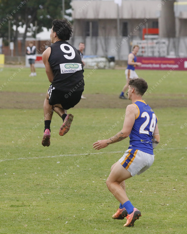Marble Range player Cooper Miller leaps to mark ahead of Lincoln South’s Max Williams. (502082_07)