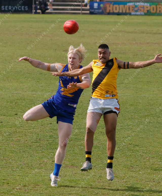 The ball spills from the marking contest between Lincoln South’s Jake Horton and Boston’s Casey Amos. (503572_03)