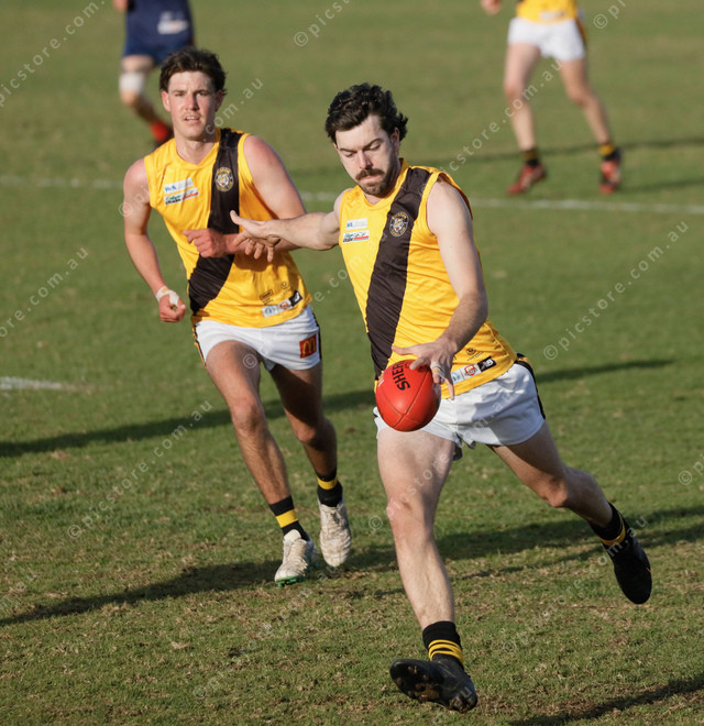 Boston’s Adam Davies guides the ball as the readies to kick. Teammate Tyrese Sincock watches on. (491406_09)