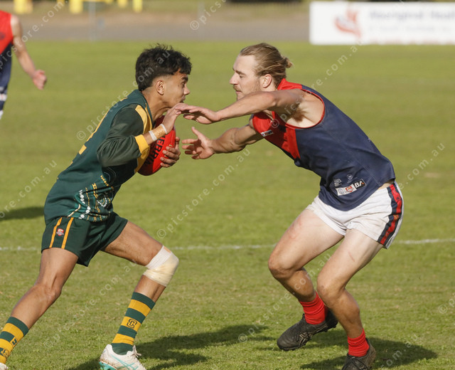 Mallee Park’s Terrence Betts tries to evade Wayback’s Jack Hegarty, (497262_10)
