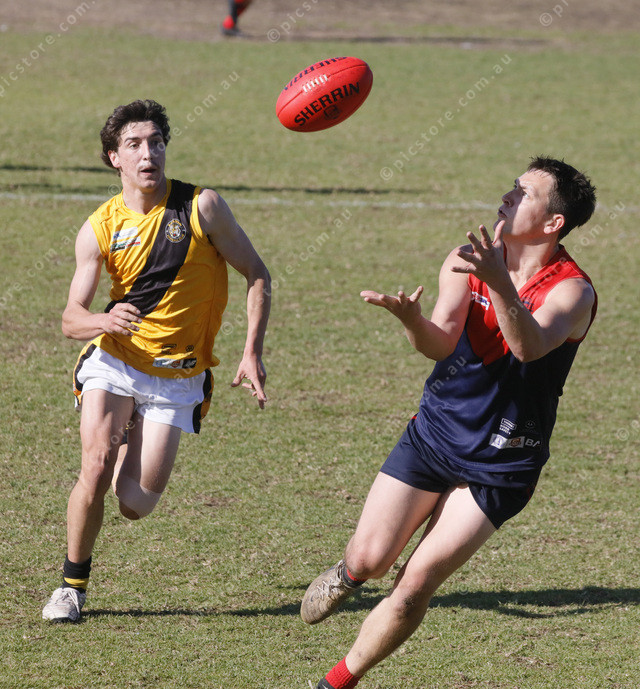 Oscar Peltz is about to mark for Wayback as Boston’s Bodhi Fauser watches on. (498731_02)