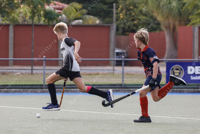 Charlie Densley moves the ball down the field for Panthers with Wanderers’ Zac Hancox hot on his heels. (469074_03)