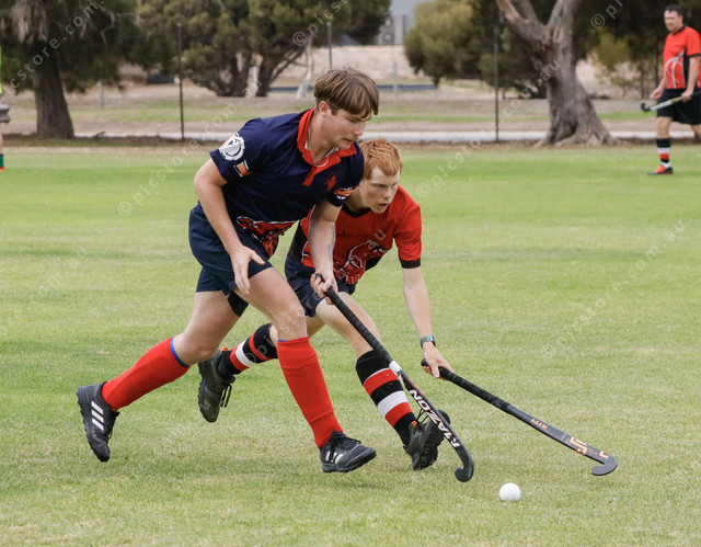 Wanderers’ Calan Rutherford and Flinders’ Hayden Francis battle for possession of the ball. (470681_05)