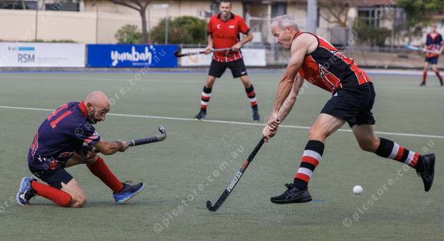 Wanderers’ Jamie Verhoeven fires a pass past Flinders player Matt Giddings in the B grade. (470681_09)
