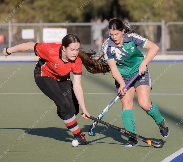 Flinders’ Clara Neate battle with Marauders’ Charlotte Davidson for possession of the ball. (487905_02)